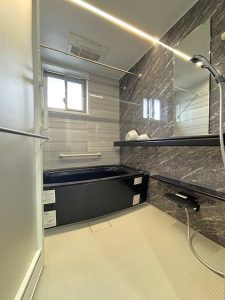 乾きやすく滑りにくいフラッグストーンフロアや浴室窓を備え、快適で使いやすい空間🛁